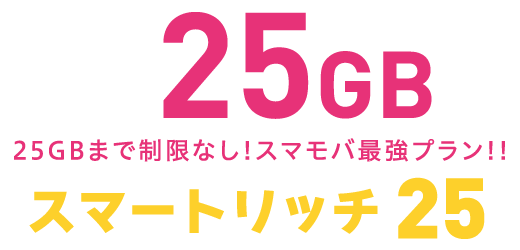 「スマートリッチ25」は、月額3,480円で通信容量25GBまで高速通信LTEが使い放題となる、データ通信専用の大容量プランです。